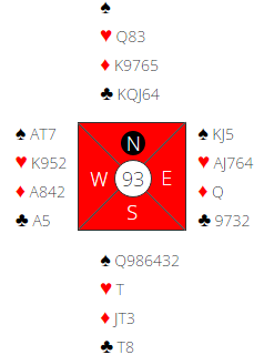 Her var det kun ni trumf til sammen, men med trumfen 2-2 var det ingen problemer. Da øst spilte ut hjerter ble det tretten stikk og BLACK noterte en meget fet +1460.