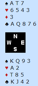 Det var imidlertid ikke Ø/V jeg tenkte på i innledningen av denne spillhistorien, se litt på N/S sine kort. Hvis du bare ser nord sine, eller bare syd sine er det ikke umulig å tenke seg at her må det sperres og meldes? Nord sine kort kan godt gi veldig mange stikk om det er god tilpasning. Her har syd litt rutertilpasning, men det blir ikke så bra å være med veldig høyt. N/S er riktignok i faresonen og Ø/V utenfor så det kanskje bør gå an å besinne seg. Men slikt er det enkelte som ikke bryr seg så mye om...