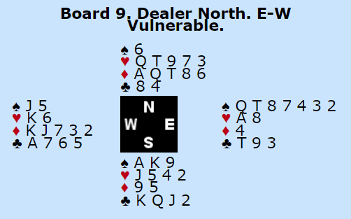 Utgangen 4 hjerter var litt i hardeste laget, men langt i fra sjanseløs. Da det kom to ganger kløver stjal Hoftaniska og spilte tre runder hjerter. Med den heldige hjertersitsen var det da elleve «enkle» stikk, +450. Om det kommer sparskift i andre stikk blir det +420 som ville gittt over 90%. Ingen andre kopierte +450, men ett par fikk +500 mot 4 kløver doblet. Så det norske paret fikk 96 % på spillet, noe som jo som kjent er meget STERKT…