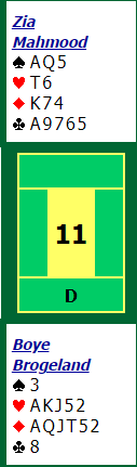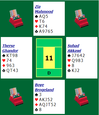 Her er et spill fra Open Pairs hvor Boye og Zia fant frem til toppkontrakten som dog ikke var 100% sikker.
