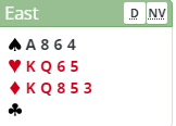 Her sitter du i 1NT der flere kan være både ett eller to hakk høyere. Første prioritet må være å berge kontrakta og få scoren sin side. Med dette i mente spiller jeg derfor av kløver fra toppen de tre neste stikka; A-Q og 8. Syd vinner kløveren tredje gang med kongen, og fortsetter ruter. Nå har du hjemgang med overstikk. Merk deg at å spille deg inn i bordet på hjerter for å ta kløverkutten ikke er så produktivt som du kanskje ønsker: Med Kxx i syd får du maks tre stikk på dette.