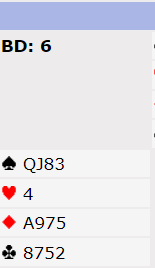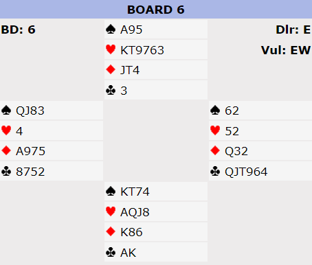 Dessverre ser det ut til at kortene til øst og vest på spill 4 har byttet plass underveis. Det er umulig å si sikkert hvordan dette har påvirket resultatet så foreløpig lar jeg det stå som det er.