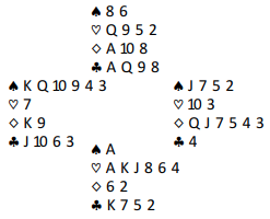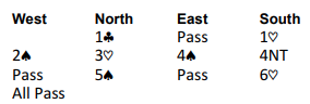 4NT var Key Card Blackwood, og nords 5 spar viste to nøkkelkort og trumf dame.