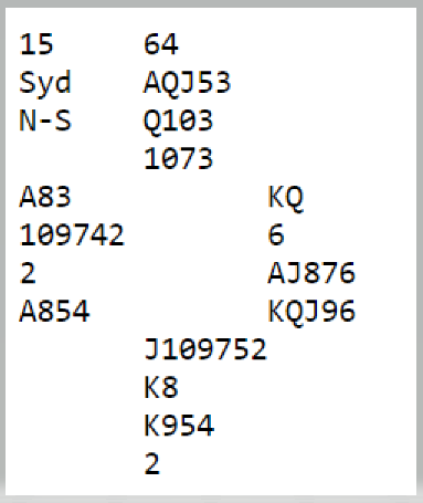 Her ble det fort fart i korta! Øst åpna 1 spar, og flere vest-spillere hopper da til 4 spar. Vest har ikke mindre enn 6 sparer å støtte med; ikke akkurat hverdagskost!