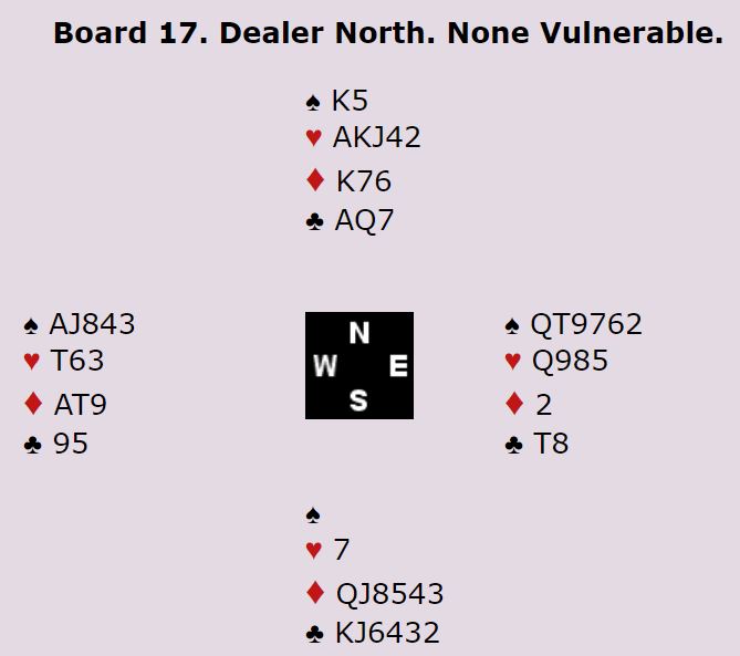 Det må bli svingspill i mange kamper med slike kort. I Bermuda Bowl fikk både Norge og Hong Kong 6 kløver på syds hånd, og da føk kontrakten hjem siden vest ikke fant ruter ess ut fulgt av ruter til stjeling. I åtte kamper av 12 i den klassen ble det sving, fra 11 til 14 IMP.