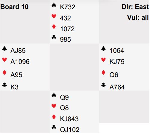 En litt vanskelig vurdering i trumfkontrakter er om man skal ta ut motpartens trumf med det samme, eller om ens egne trumfer behøves for å stjele tapere, eller kanskje noen ganger til overgang(er) mellom hendene. Her er et eksempel fra parmesterskapet under bridgefestivalen i New Zealand i forrige uke.
