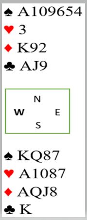 Svaret 5 spar som viste to nøkkelkort OG TRUMF DAME (som han altså ikke hadde) var en fin liten julegave til syd som var en spiller som kunne telle til tretten. For syd har jo trumfdamen selv. Så enten har nord tatt feil i meldeboksen (skulle meldt 5 hjerter), eller så har han sekskorts spar. Og man må vel tro på at at makker vet hva han driver med? Idet syd fikk vite om ruter konge også kunne han telle seks sparstikk, ett hjerterstikk, fire ruterstikk og to kløverstikk = 13 stikk fra topp! Da er det ingen vits i å melde 7 spar, men heller ta med det lille ekstra 7NT gir. Dessuten er jo 7NT sikrere, det kan jo en sjelden gang komme ruter ut til stjeling i sparkontrakt.