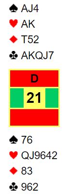 Som syd har du blitt spillende 4 hjerter ettter at øst har vært innpå med en sperremelding i ruter. Vest spiller ut ruter konge som øst stikker over med esset og tar for ruter dame, vest følger farge. Så kommer ruter knekt fra øst. Hva gjør du nå?