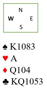 De aller fleste havner vel i 6 spar som Ø/V. Og det gjorde de fleste i Bodø også, kun ett par var i utgang. Men ett par til hadde et annet resultat enn +1010 som det blir i 6 spar hvor ruterfinessen går og gir det trettende stikket. Klukowski-Helgemo var i 7 hjerter med kun 4-3 tilpasning i trumf!