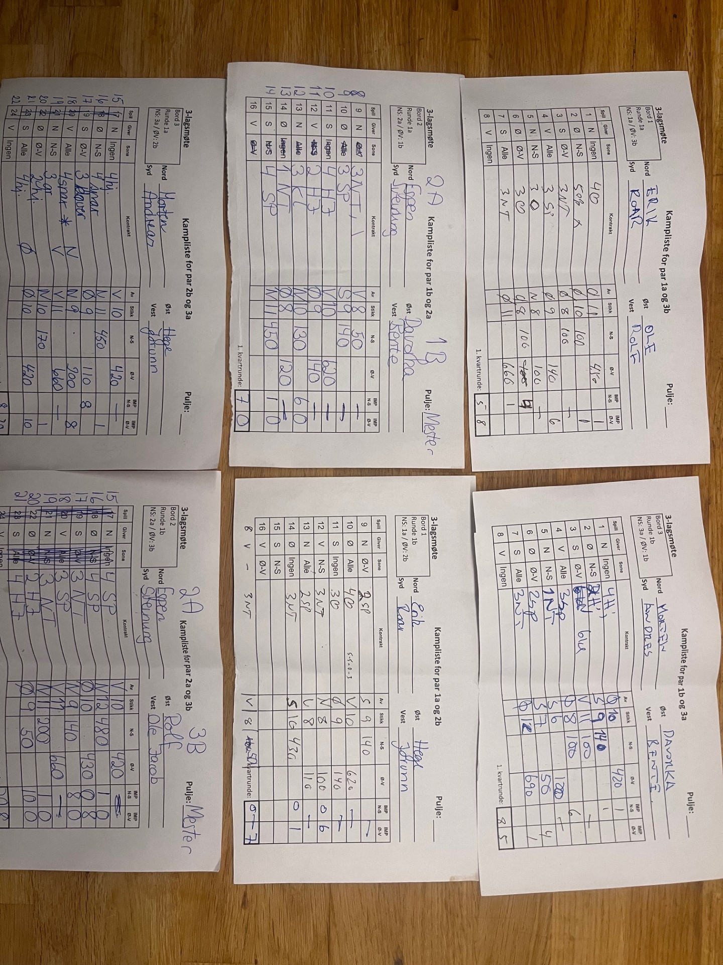 Av de tolv lagene vant syv av dem 4H. Fire N/S-par gikk bet i utgangen, og ved ett bord ble det spilt 3 spar Ø/V med en bet.