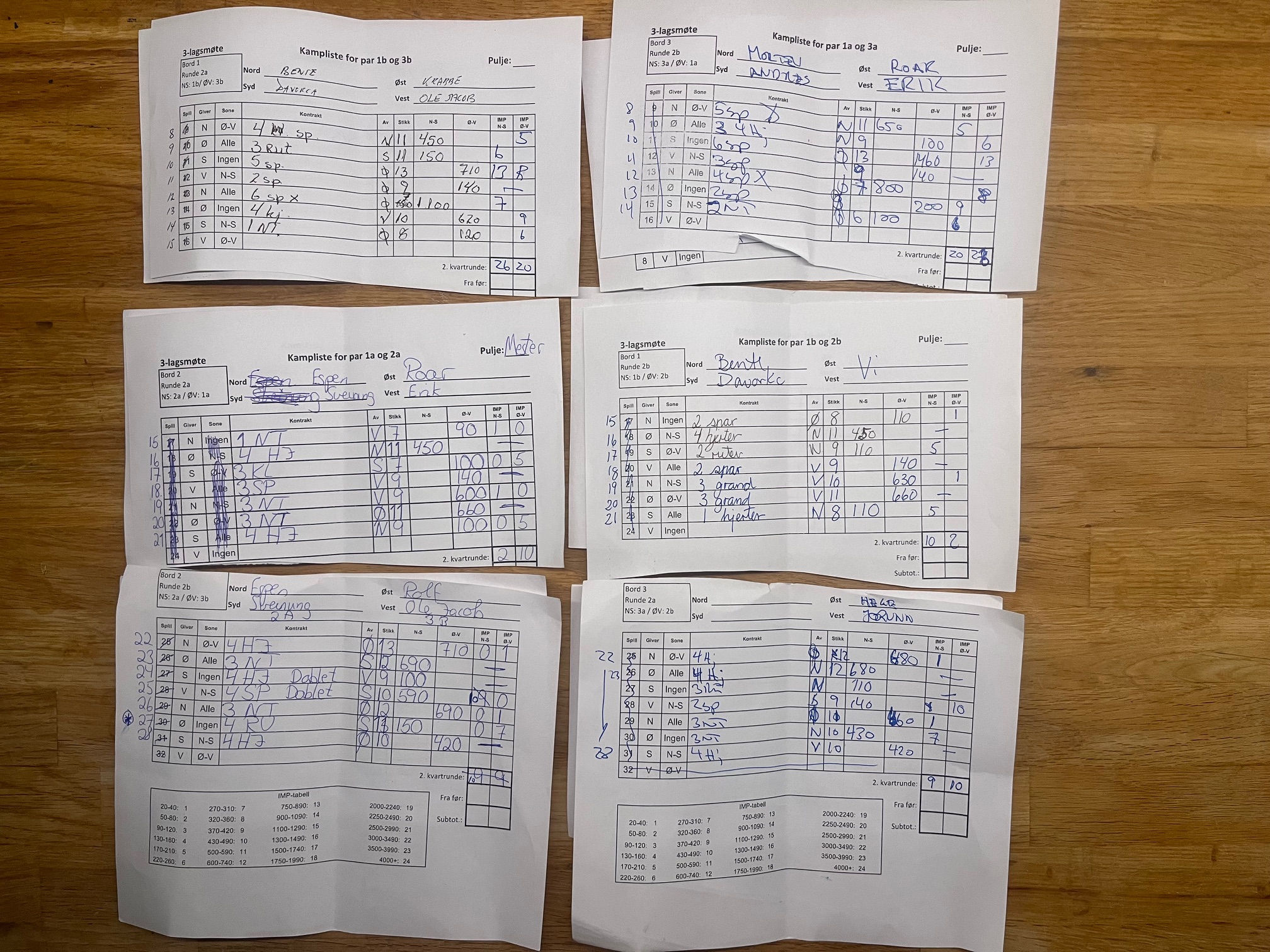 Her kommer foreløpig sammenlagt for sommerbridgen 2024 per 21/05