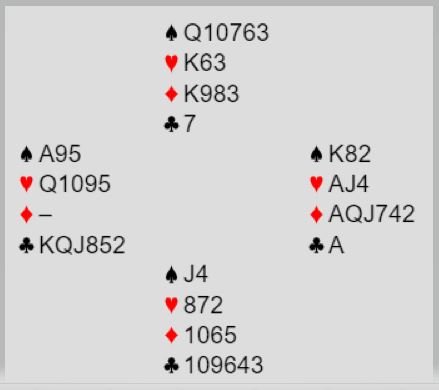 Noen få spillere på nords plass valgte å spille ut kløver. Det var en skivebom av dimensjoner:
