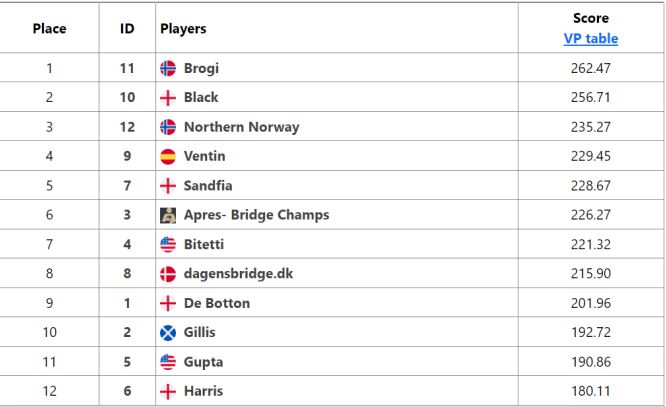 Husk at den ordinære poengserien på vår resultatsiden IKKE tar hensyn til kravet om 4 forskjellige makkere.
