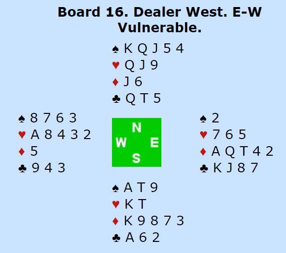 Der Norge spilte motspill så antagelig øst idet han fikk på ruter dame at han kom til å bli skviset hvis spillefører hadde kløver dame. Så han skiftet like godt til kløver, også ti stikk.
