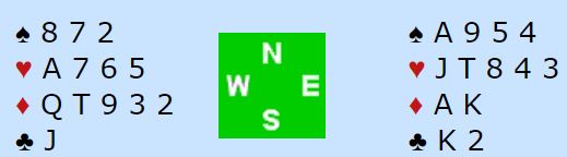De fleste poeng flakser hit og dit i de helt ordinære spill, og det henger ofte på utspill og godt motspill. Men de ordinære spill er litt kjedelige å skrive om, så jeg tar heller et nytt spill fra siste klubbkveld der det for mange av oss gikk helt skeis. Fordelingshender er vanskelig å melde, selv for garvede spillere og slike som oss andre midt på treet.