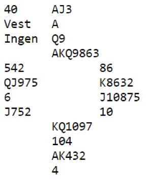 Fra turneringen i juni tar vi med et spill som først var et meldeproblem for N/S.