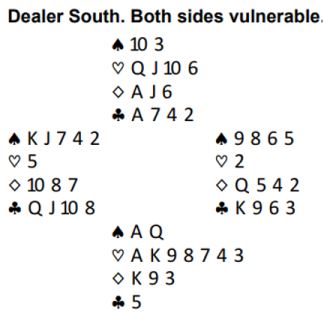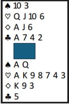 Det oser elminasjon av disse kortene med massevis av trumf på begge sider og mulighet for å eliminere kløveren. Spørsmålet deretter blir hvordan skal innspillet fungere?