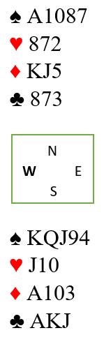 Det kan være fort gjort å se for raskt på dette og konstatere at her er det finessemuligheter i begge minorfargene. Kløverfinessen kan gå, og tas en vellykket finesse i den fargen handler det om overstikk idet en prøver å lokalisere ruter dames plassering. Men om vest vinner stikk for kløver dame og frir seg med kløver avhenger kontrakten av å tippe hvem som har ruter dame.