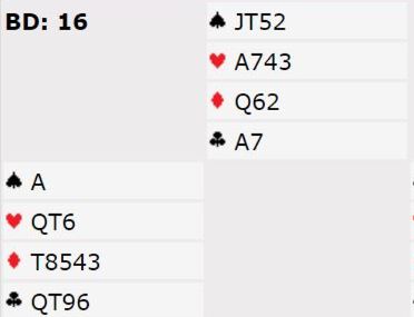 Her er et godt eksempel fra en parturneringen forleden. Først får du se kun østs kort: