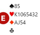 Det gikk pass rundt på 4 hjerter, og syd spilte ut spar ess. Slik så hele spillet ut: