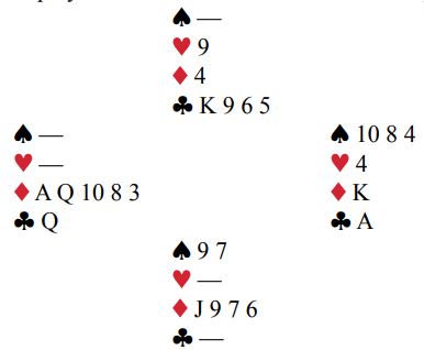 Da nord fortsatte med enda en hjerter til østs dame forsvant syds siste kløver. Dette var igjen: