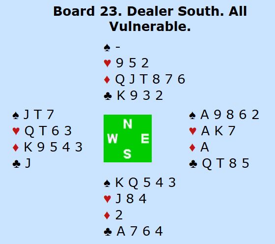 Modig av dem, men spillefører fikk ikke dreisen på det (bedre motspill) og gikk to redoblede bet. Det ga den uvanlige scoren +1000 til N/S, og med totalt +1790 ga dette 18 IMP til Gillis.