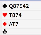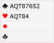 Men vi tenker oss at syd i innspill-situasjonen kommer på med damen eller kongen i hjerter over østs knekt. Da trumfes hos vest og spillefører må tippe litt. Om syd har ruter konge har han den hele tiden, og vi kommer til å vinne denne slemmen uansett. Men nå kan en spille på en av to sitser som gir kontrakt selv om nord har ruter konge. Du kan satse på at det så omtrent slik ut fra start: