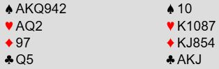 Samme hva du gjør støtter syd hjerteren og din makker støtter sparen din. Da blir det med slike kort alltid full fart i meldingene videre. N/S er på et tidspunkt i 5 hjerter, men du melder 5 spar over det. Da melder motparten 6 hjerter! Passer du, eller er det best å ta en stamp i 6 spar som ikke kan koste så mye?