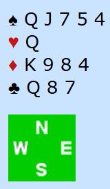 Merk at det står nesten i 5 kløver med Ø/V sine kort. For å bete den kontrakten må det spilles ut spar. Inne på trumfesset (kløver) må nord underspille hjerter A-QJ femte til syds konge, og syd spiller spar til stjeling.