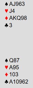 Det amerikanske paret fikk spar som trumf da nord støttet sparen i andre melderunde. Deretter fant de ut at alt som fantes av toppkontroller var på plass og at trumfen (spar) var ok, så de meldte de 7 spar.