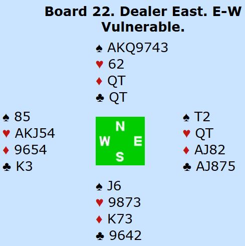 Mens vi venter på at finalene i Youth Championship Pairs starter i Italia tar vi med et spill som ble omtalt i bulletinen (fra gårsdagens spilling).