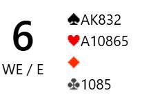 Ved nesten alle bord ble det spilt 4 hjerter som er en grei utgang, avhengig av kløverfinessen gjennom syd som åpnet med 1 ruter stort sett ved alle bord. Så meldt og vunnet +620 kan man ikke regne med å vinne noe på, det er vel alltid et buttspill? For hva kan gå galt for Ø/V her?