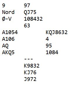 Her er et spill fra lagturneringen hvor starten på meldingsforløpet avgjorde om Ø/V hadde en mulighet til å finne toppkontrakten som var god, men ikke helt sikker. Ta først kun en hånd og vurder situasjonen etter et par mulige scenarier: