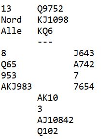Merk at om det spilles med åpne kort kan spillefører stikke med hjerter ess både i første og andre stikk siden hjerteren er blokkert.