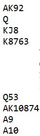 Så var det N/S sin tur å ha kjempekort. Allerede i spillet etter fikk nord utlevert disse kortene: