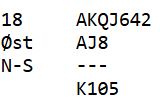 Det er imidlertid en bet i kontrakten 4 spar, og 4 hjerter kan gå bet om det kommer ruter ut til esset, ruter til stjeling, spar til nord og nok en ruterstjeling.