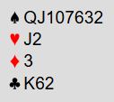 Tre eller fire rutere hos øst (eller damen dobbel foran gir jo lett spill for alle, og 10 stikk) er alt som behøves for å vinne denne utgangen etter tre runder spar i starten.
