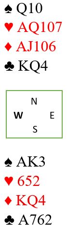 Og den bitte lille ekstra sjansen: 3. Siden vest viste seg å ha kløverstopper og ingen hjerterhonnør vinnes det med rett spilleføring om sitter som i diagrammet, dvs. øst har konge-knekt dobbel i hjerter.