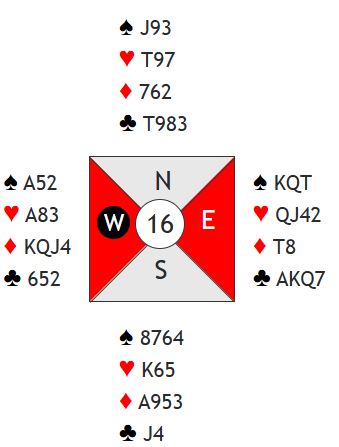 Vest prøvde 4NT - Key Card Blackwood, men da øst hadde ett nøkkelkort visste ikke vest med sikkerhet hvilket det var så det kunne mangle to nøkkelkort, og vests trumfkvalitet er ikke særlig god. Så de stoppet i 5 spar.
