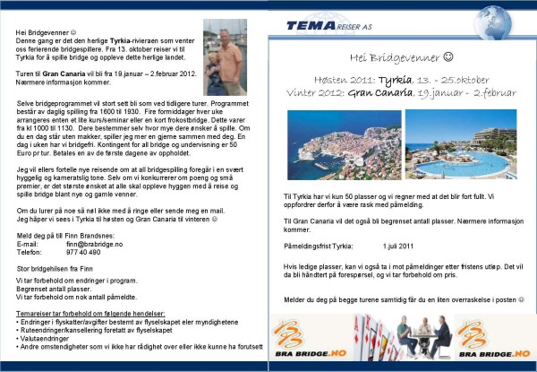 Utspillet fra Lars Erik var kløver A og vri med ruter J. Hege tenkte bare en liten stund. Inn på ruter K. kløver til stjeling. 1 hjerter tilbake og ny kløver til stjeling. A og K i spar og spar til stjeling med hjerter A. Hjerter til 10, og spar til stjeling. Det er nå blitt stjålet 2 kløver i bordet. 2 spar på hånden. A og K i spar. Trumfen tas ut i 3 omganger med avkast av ruter. Bordets 5te spar og ruter A tar de siste 2 stikkene. En sikker og god spillemåte (3 spar, 5 hjerter, 2 stjelinger i kløver, samt 2 ruter stikk) 12 stikk. Selv med hjerter ut og ny hjerter etter å ha kommet inn på A i kløver hindrer ikke dette. Kun trumfen 4-0, eller spar 5-1 beiter denne spilleføringen.Flere fikk 12 stikk, men mange etter utspill av ruter D og deretter fisk mot A 10.