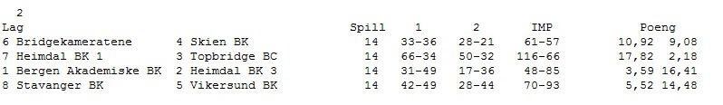 Bridgekameratene - Skien , Lukket romm kamp 2/1