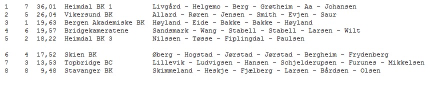 8 2 3,71 Heimdal BK 3 Nilssen - Tøsse - Fiplingdal - Paulsen