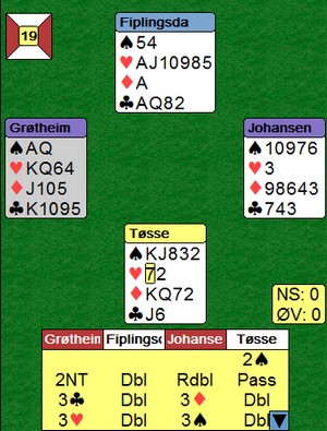 Jim åpner med 2hj og når også Tor er med å forstyrrer, kan jeg ikke se hvordan Mikkelsen - Furunes skulle kommet i slem.