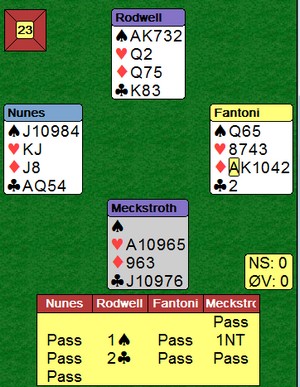 Det er slike spill som fascinerer meg med bridge. Når du ser alle kortene, er det ti toppstikk. 3+3+2+2= 10. Hvordan kan da verdens beste bridgespiller gå beit? Nesten enda verre, hvorfor ser ikke kommentatorene på BBO at beste spilleplan fører til beit?