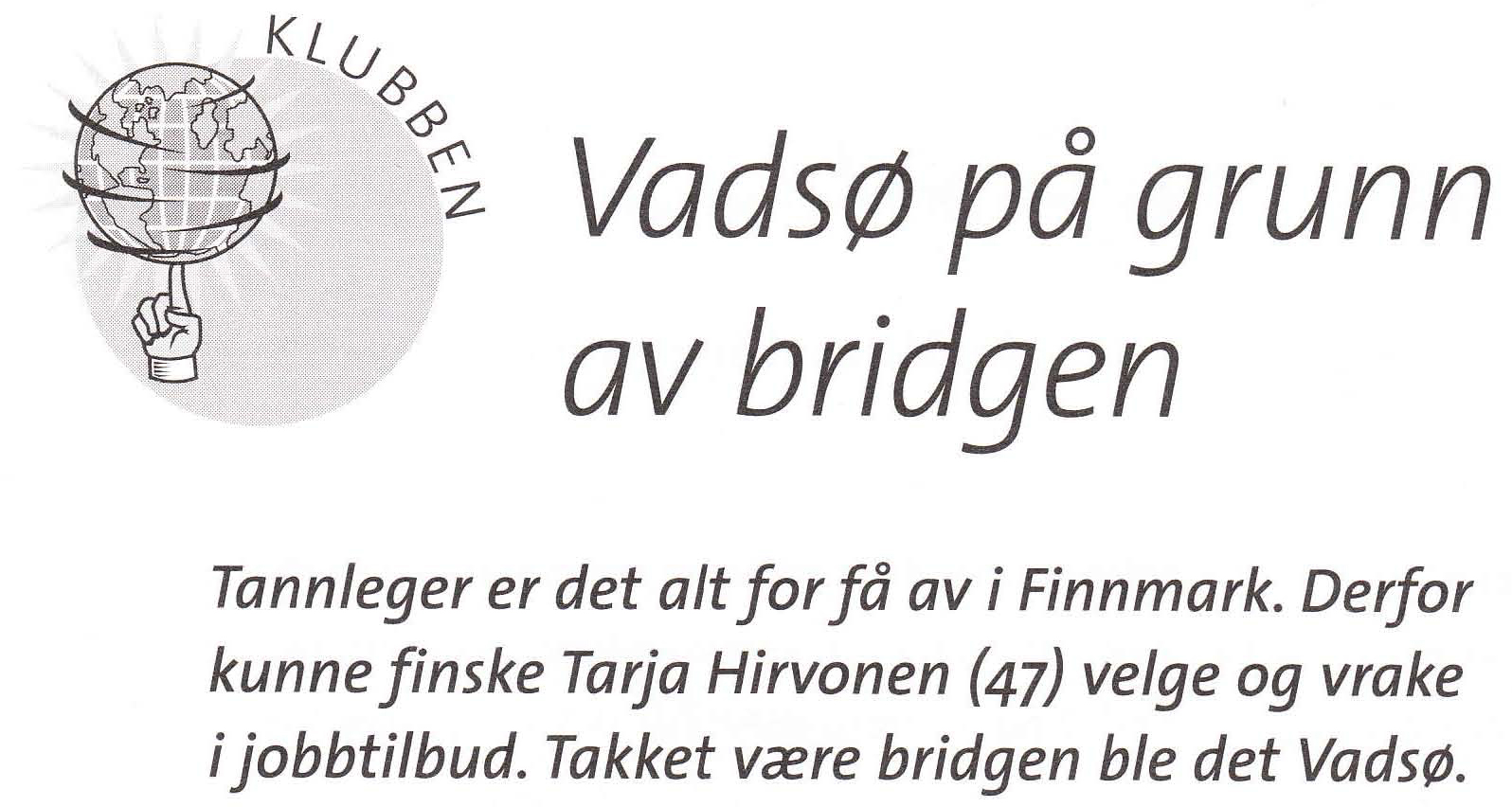 Har du gamle utklipp fra Vadsøbridgen eller lignende så kom med det så samler vi det sammen og publiserer det på hjemmesiden.