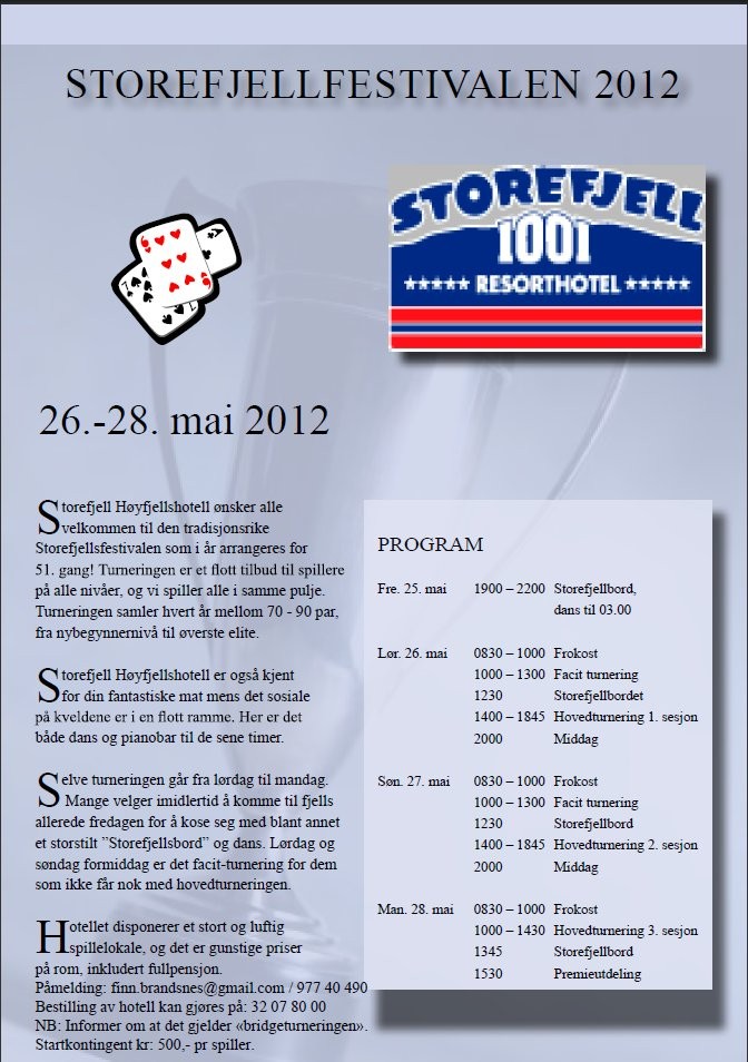 Siste mandag på Ås bridgeklubb, så stilte Kolbotn BK med 2 par. Stig Arne og Egil vant denne kvelden med utrolige 73% score. Det er veldig sjelden at noen klarer å få en slik score. Det var tross alt med 11 par. Dette resultatet betød også at de ble beste par over 4 kvelder. Resultatlisten.
