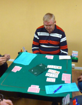 Kjell Bråthen og Arne Gabrielsen delte seieren med 2 andre par i 8. runde av klubbmesterskapet. Seieren ble delt med Alf R. Jakobsen og Jarle Fredheim og Karl M. Melkeraaern og Fritz Johnsen. Ni par deltok. På bildet til venstre er Kjell Bråthen fra et av vinnerparene.