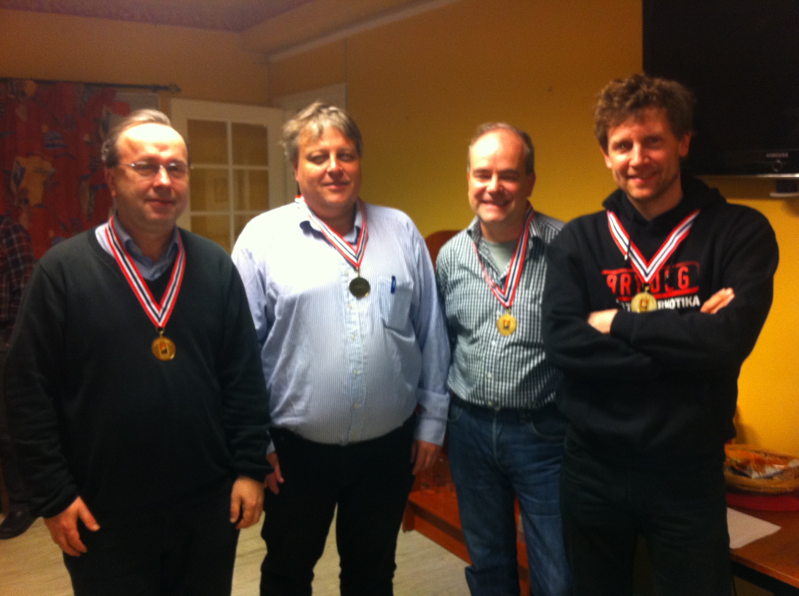 På andreplass kom Gunnar og Harald, foran Kjell og Jan på tredje. Dette var simultanturnering også, og vi kommer tilbake med resultatet fra landsoversikten når det er klart.