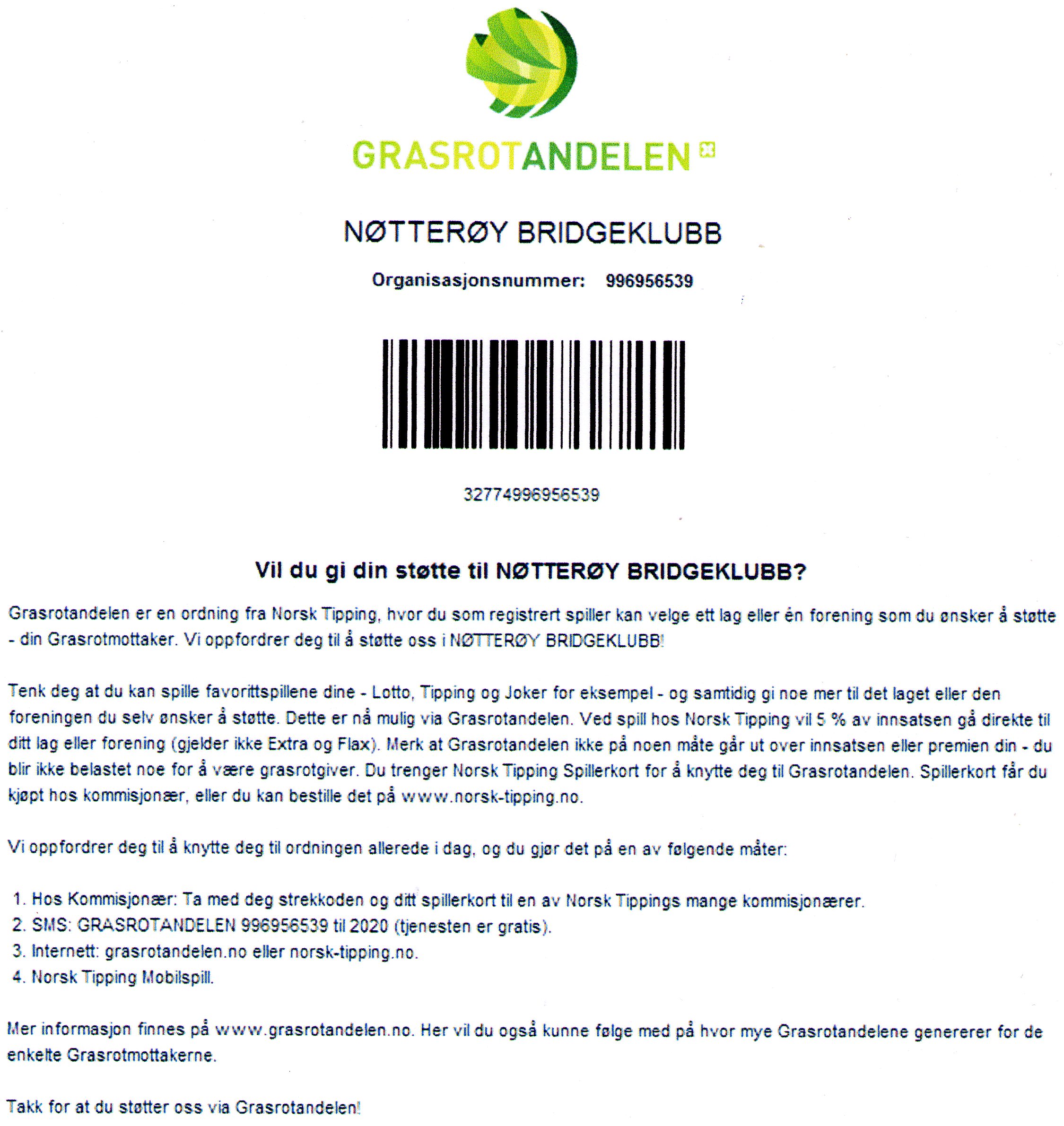 Medlemmer som ikke har registrert grasrotmottaker og som kunne tenke seg å la klubben vår motta denne andelen, kan sjekke hvordan dette kan gjøres ved å ta en titt på vedlagte brev. Klikk her
