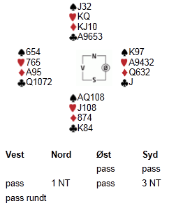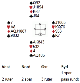 Vest spilte 3 ruter i spillet under, og fikk liten spar ut fra nord: